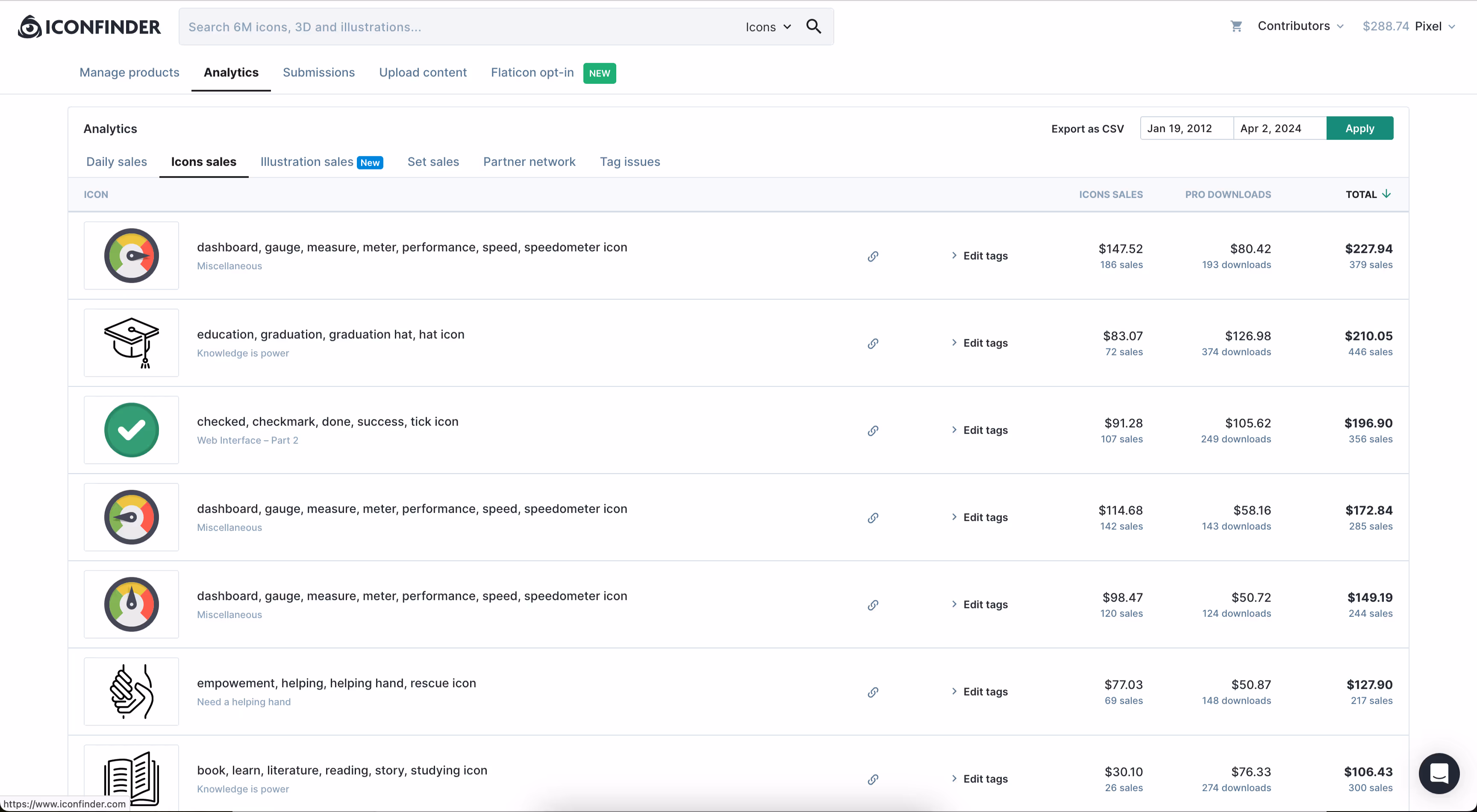 Marketplace for specialized iconography with $1,800 in TTM revenue.